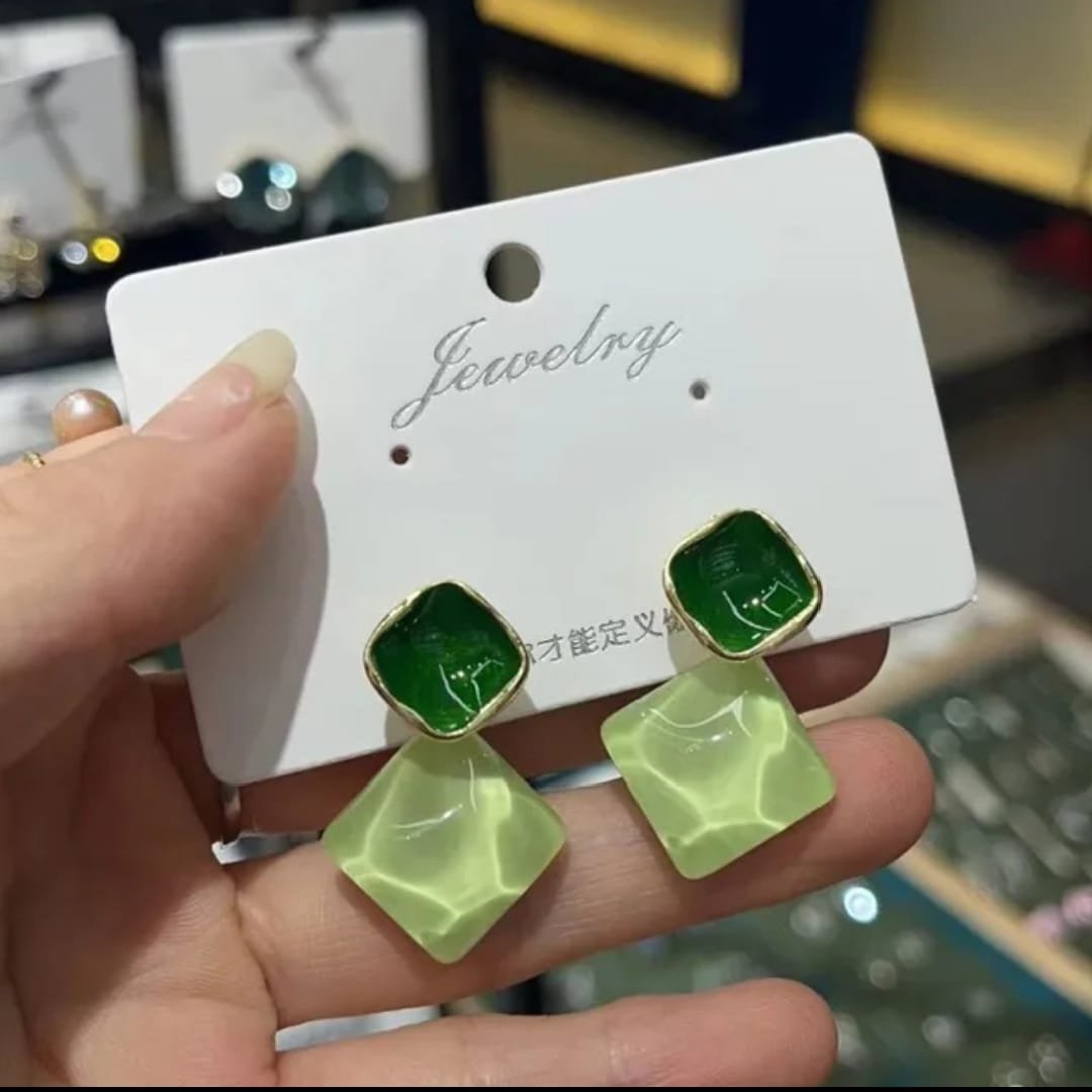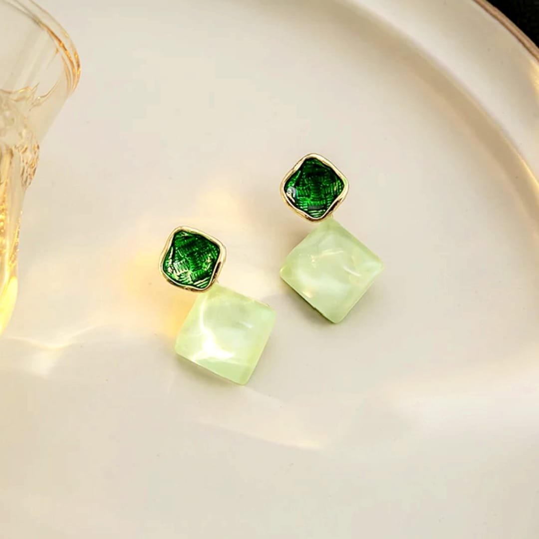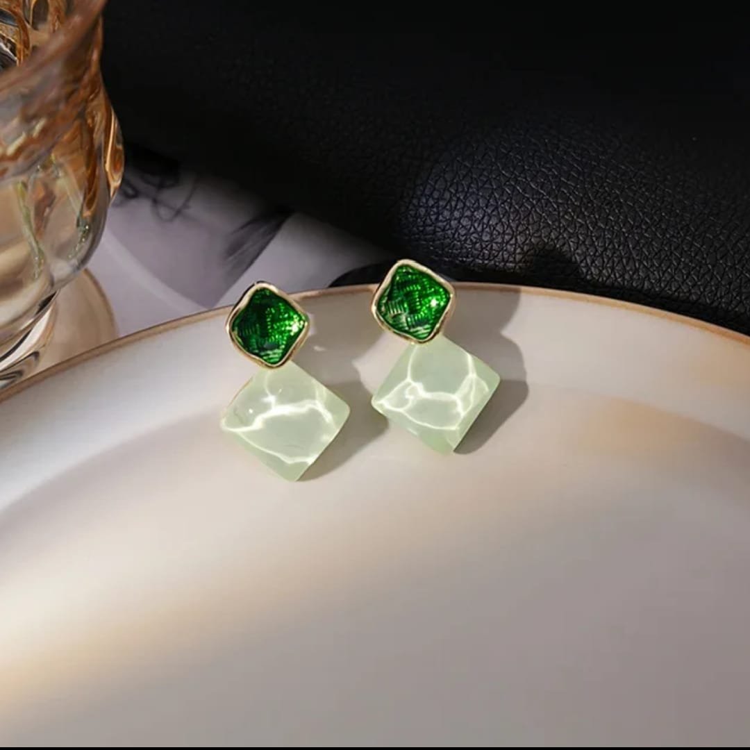 Elegant Korean Western Partywear: Monalisa Stone Premium Quality Earrings in Green