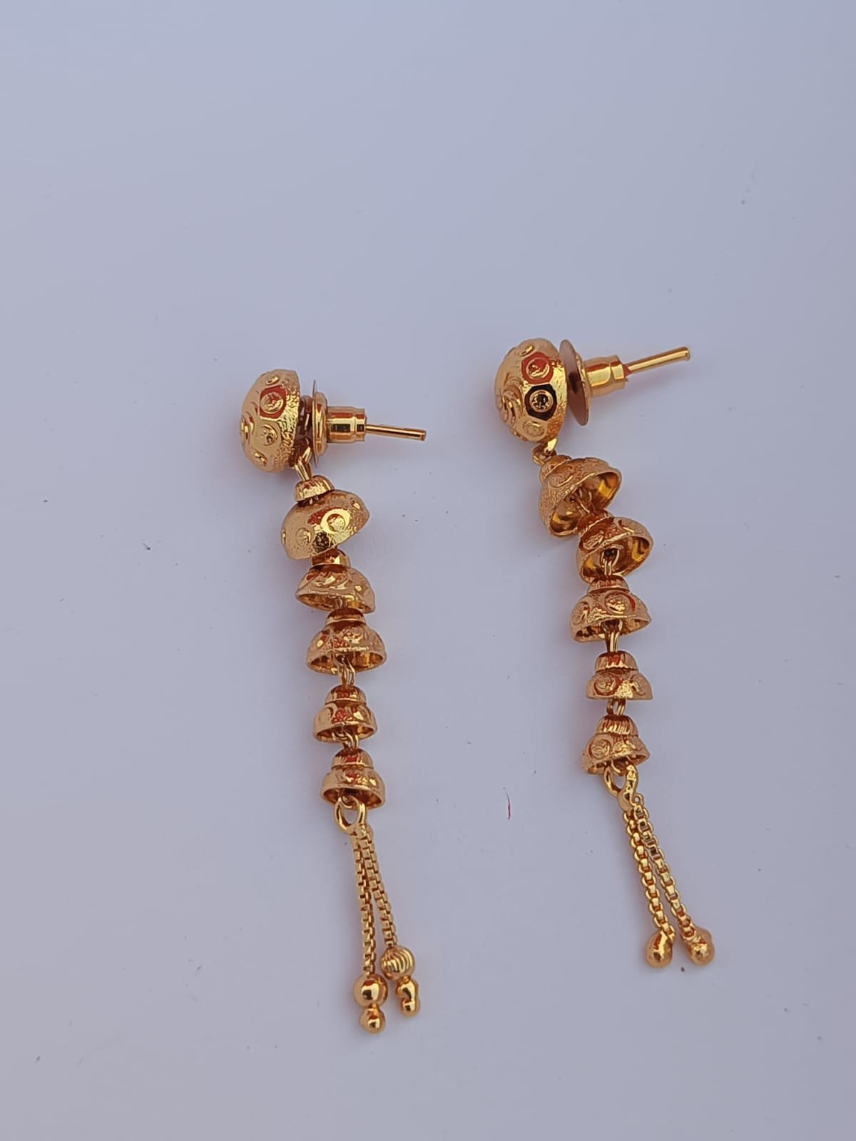Name : One Gram Gold Plated Screwed Earrings With Ear Chain