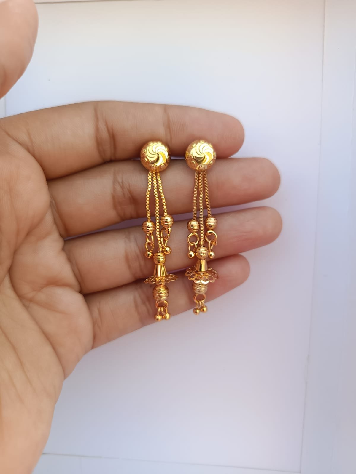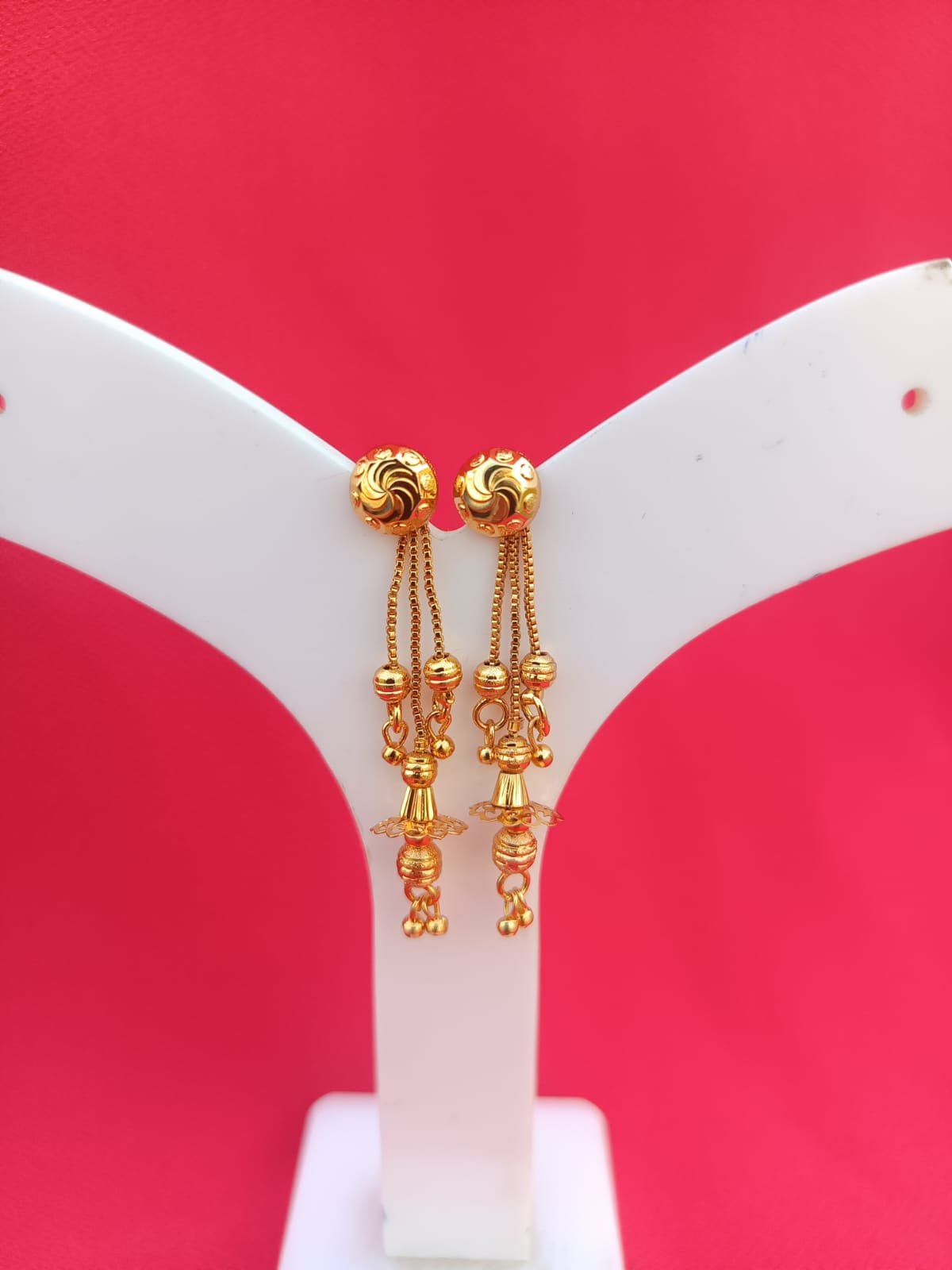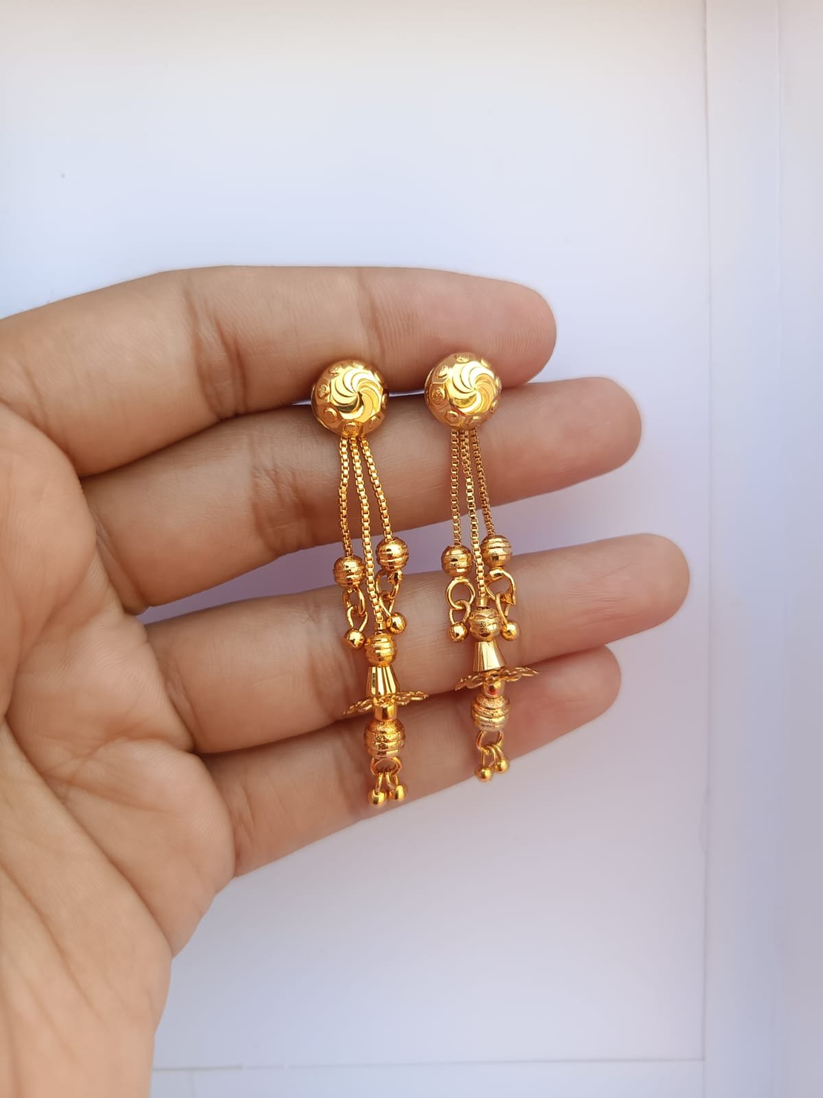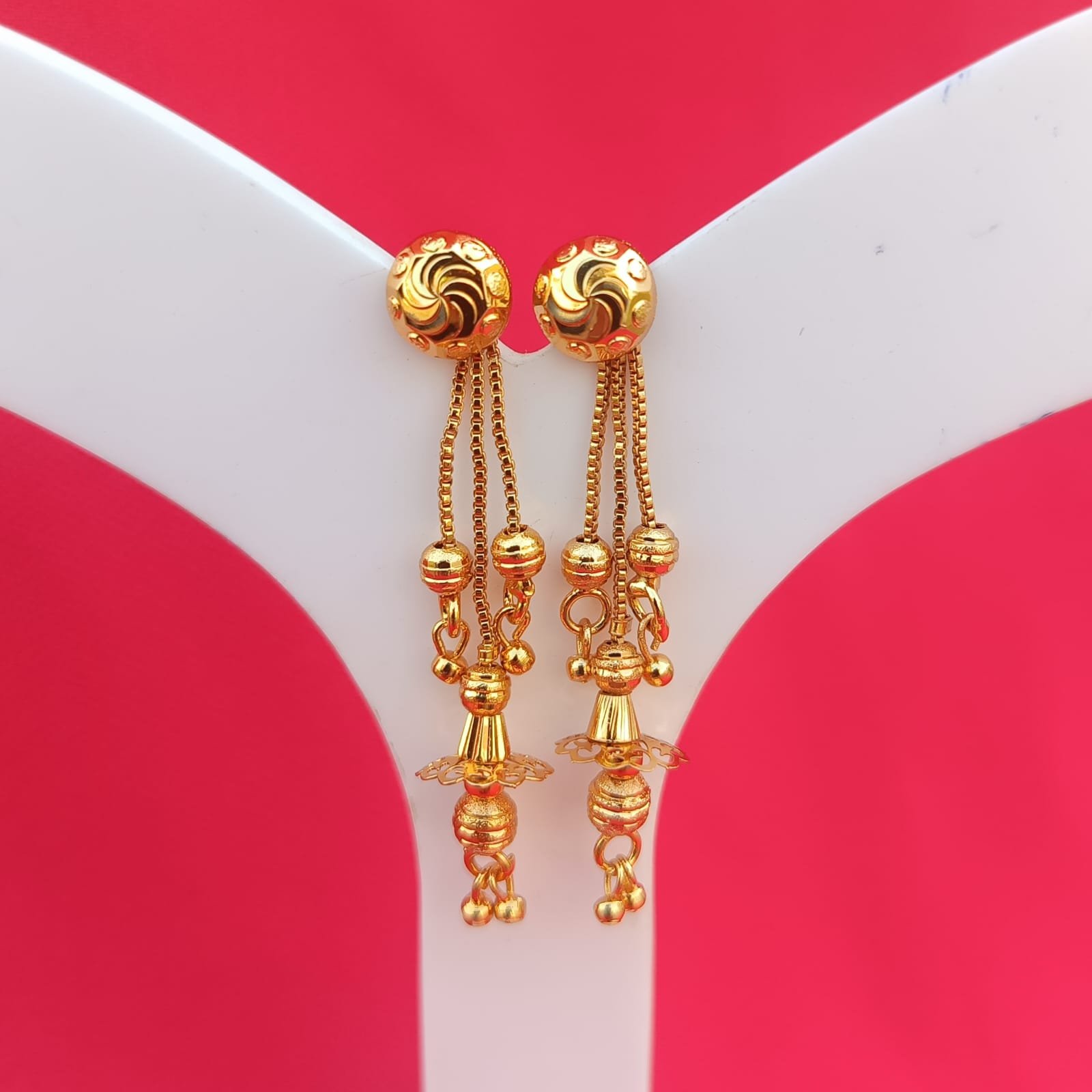 Name : One Gram Gold Plated Screwed Earrings With Ear Chain