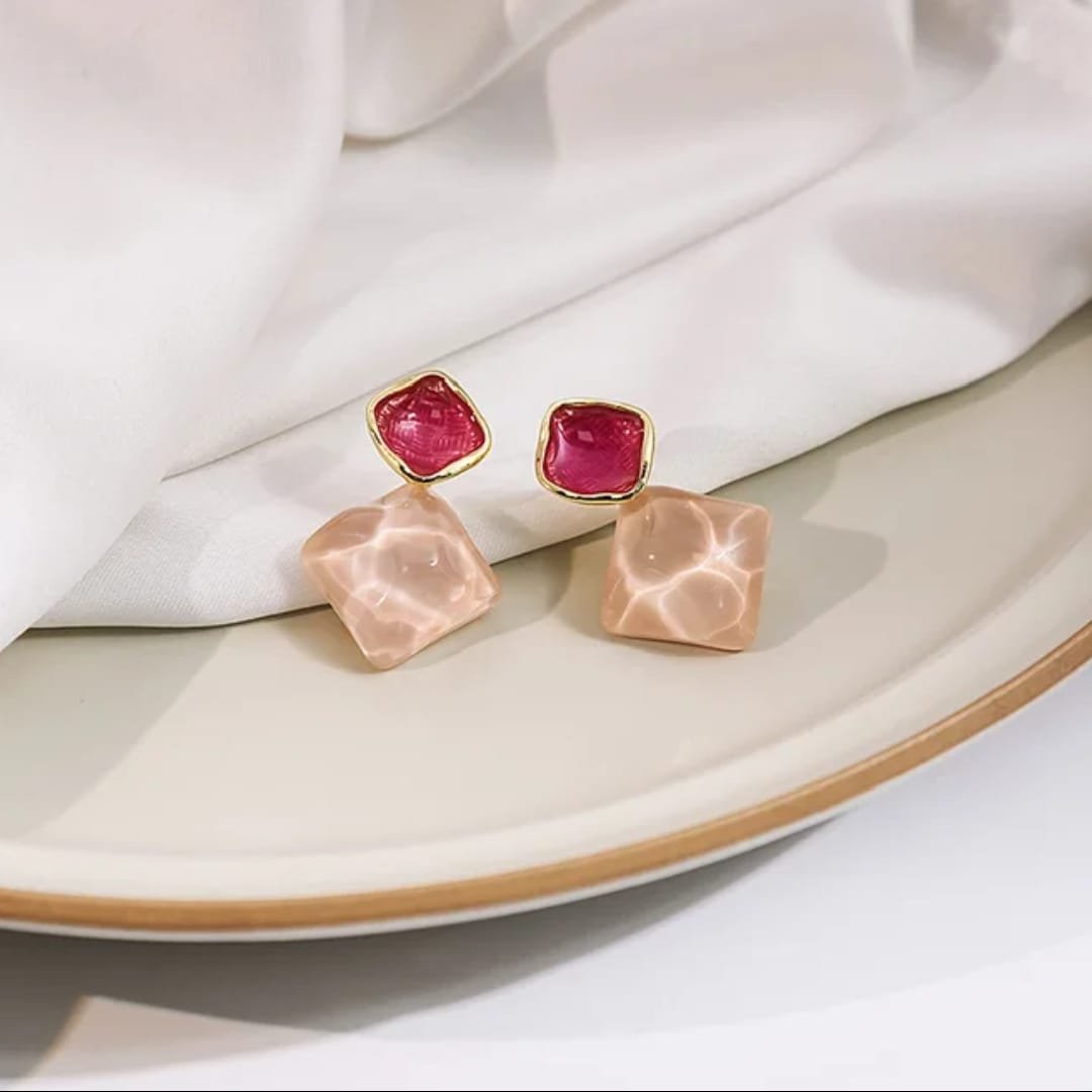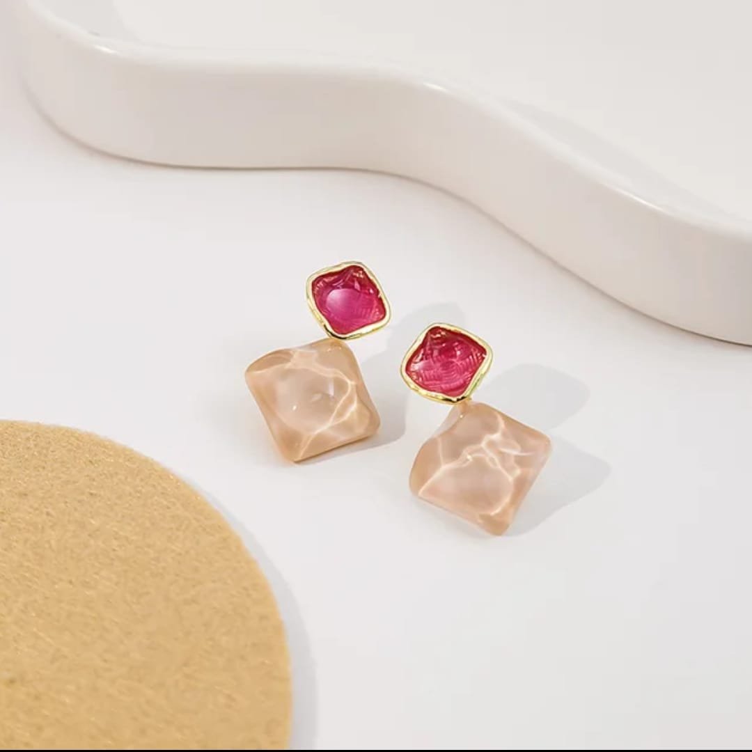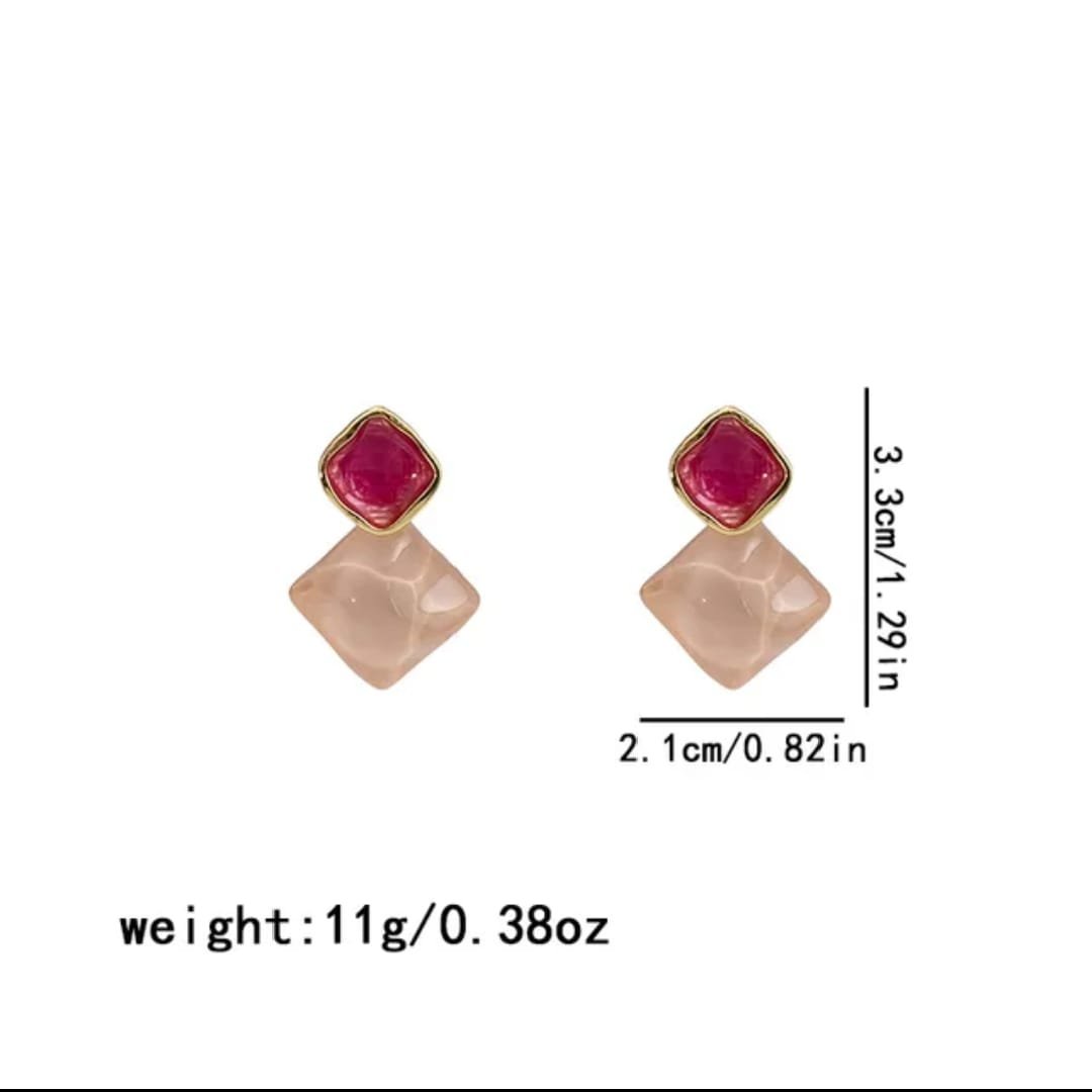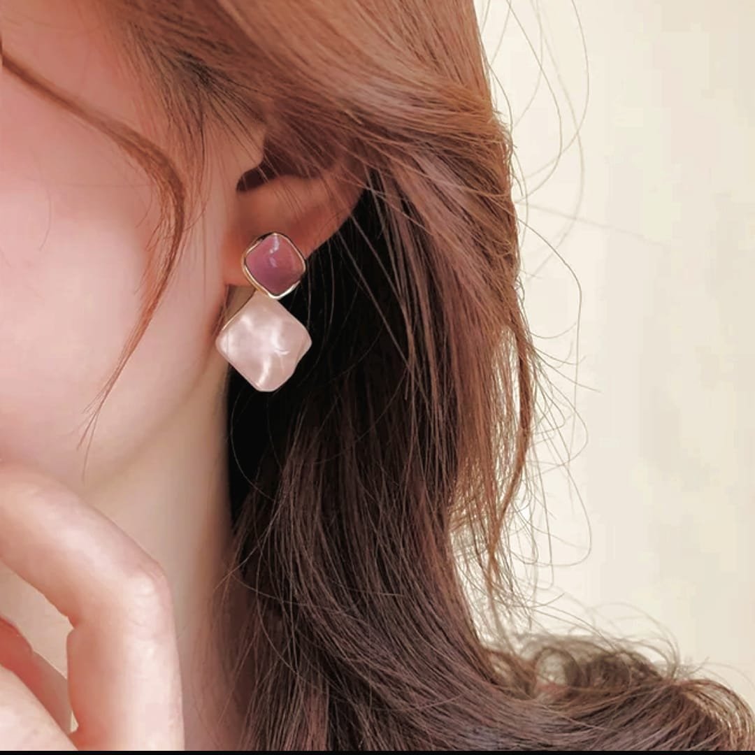 Exquisite Korean Western Partywear: Pink Monalisa Stone Earrings