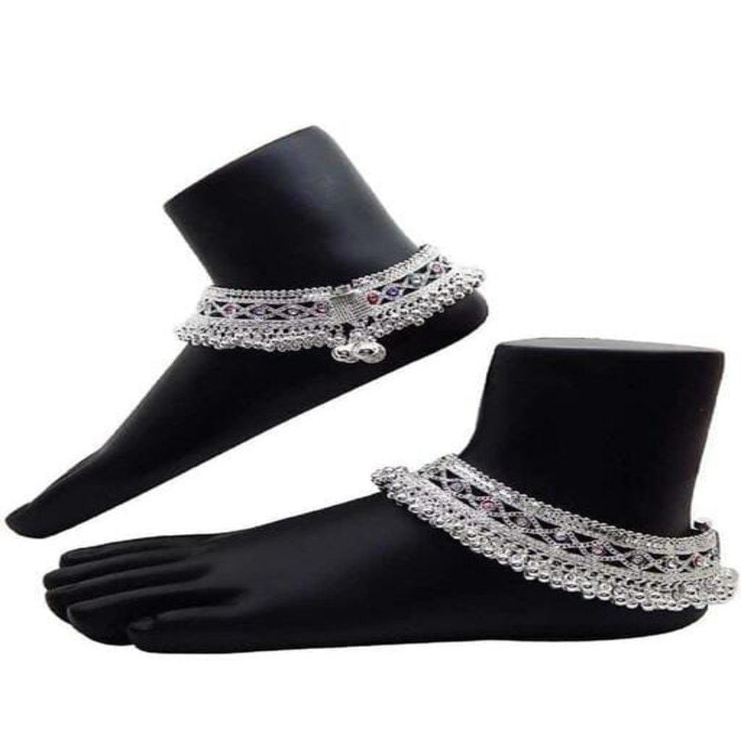 Beautiful Indian Traditional Silver Plated Partywear Payal Pajeb Anklets For Women And Girls