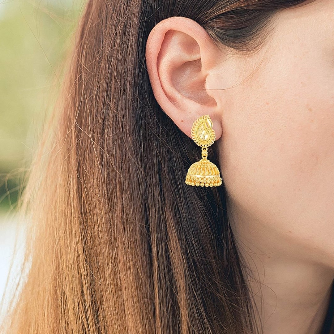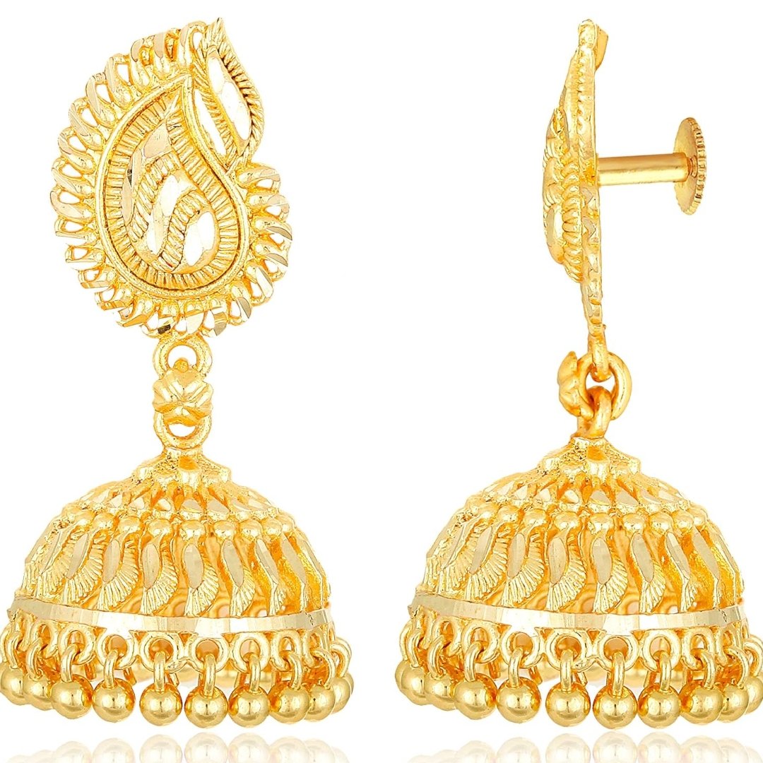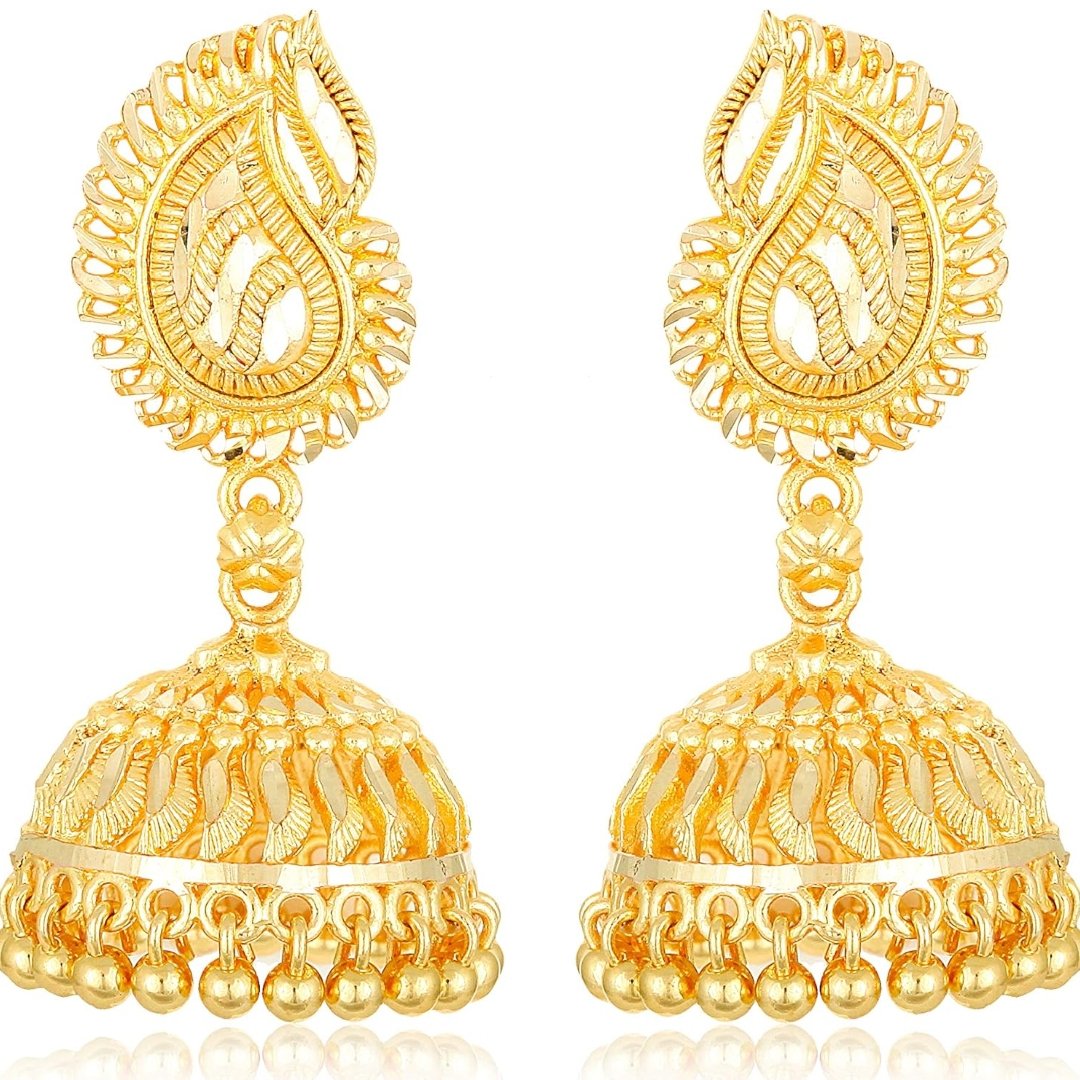 - Jhumkas 22K Golden Fancy Party Wear Ethnic Antique Earings Ear Rings Traditional Wedding Bridal Gold Plated Jhumki Earrings